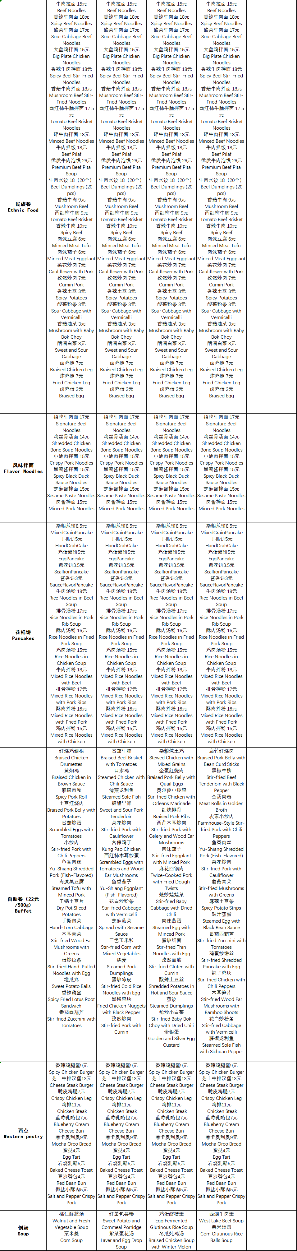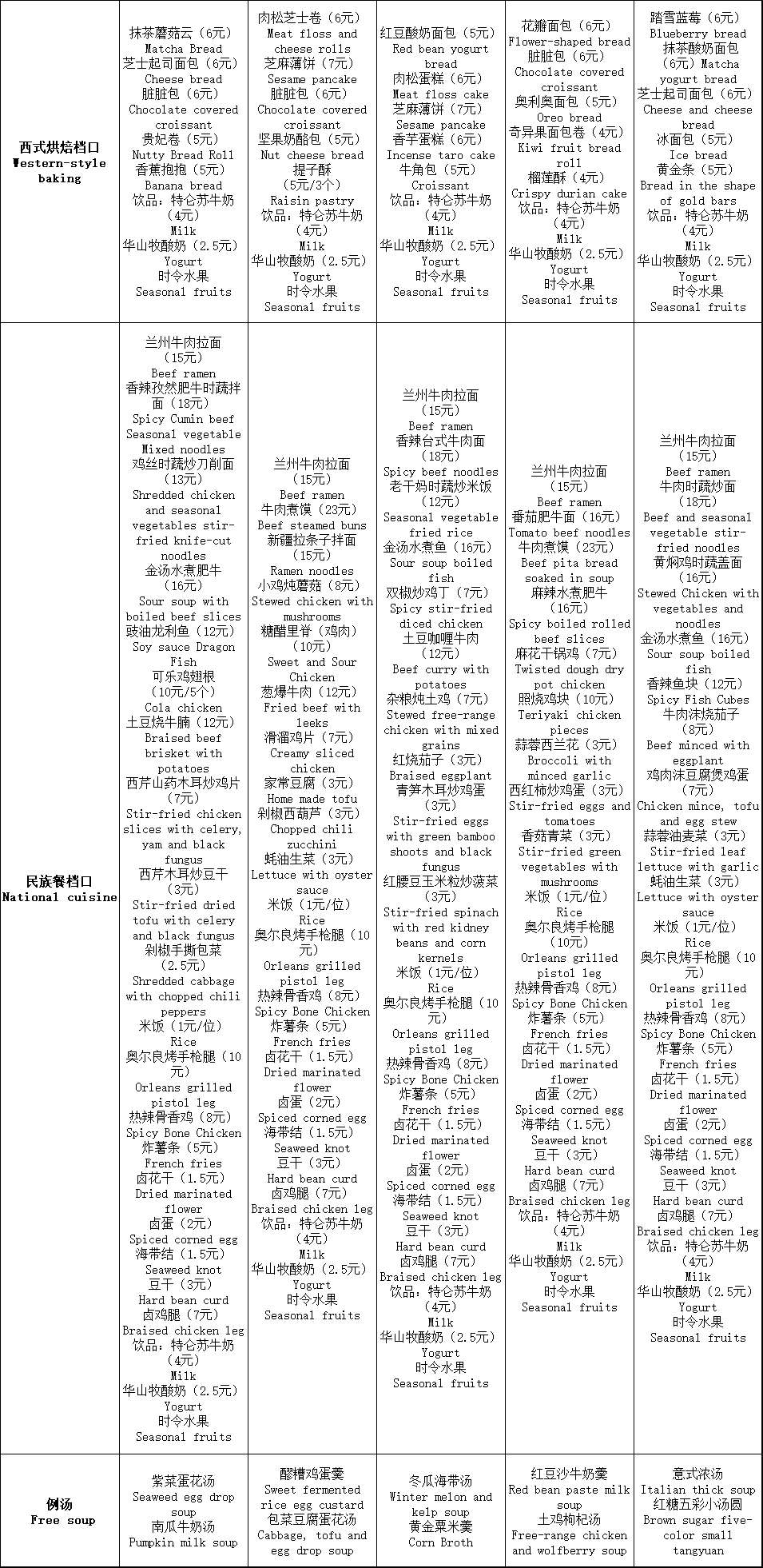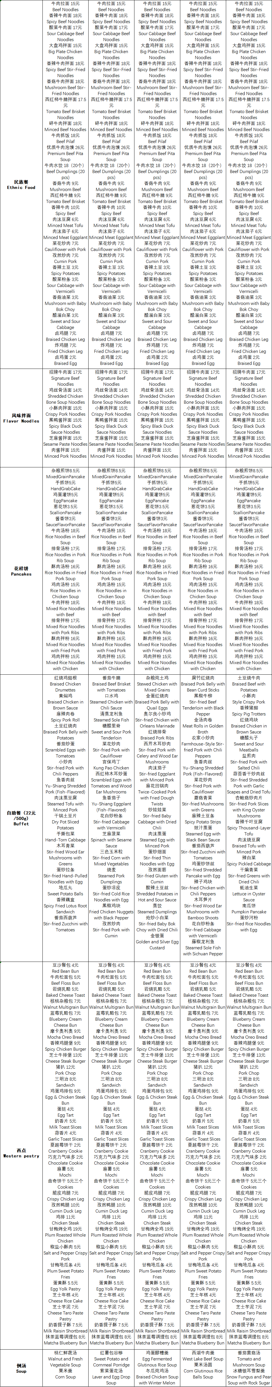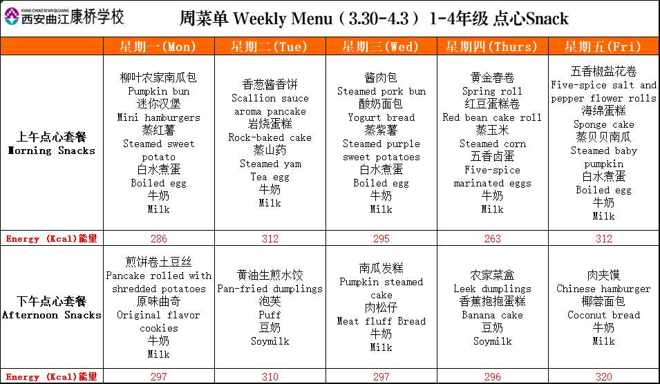 二餐厅周菜单(3.30-4.3)